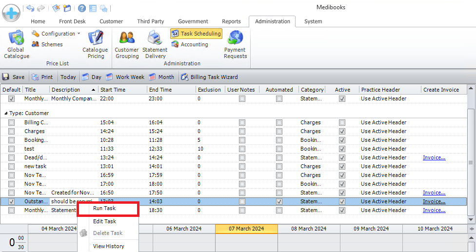 To generate the current statement information, the task must be run. This can be done by right-clicking on the task and selecting Run Task.