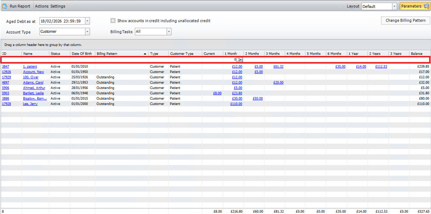 This dialog shows the accounts listed on the Ageing Debt report’s grid including any changes made by filters.