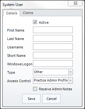The [Access Control] field allows you to select the level of functionality this user should have.