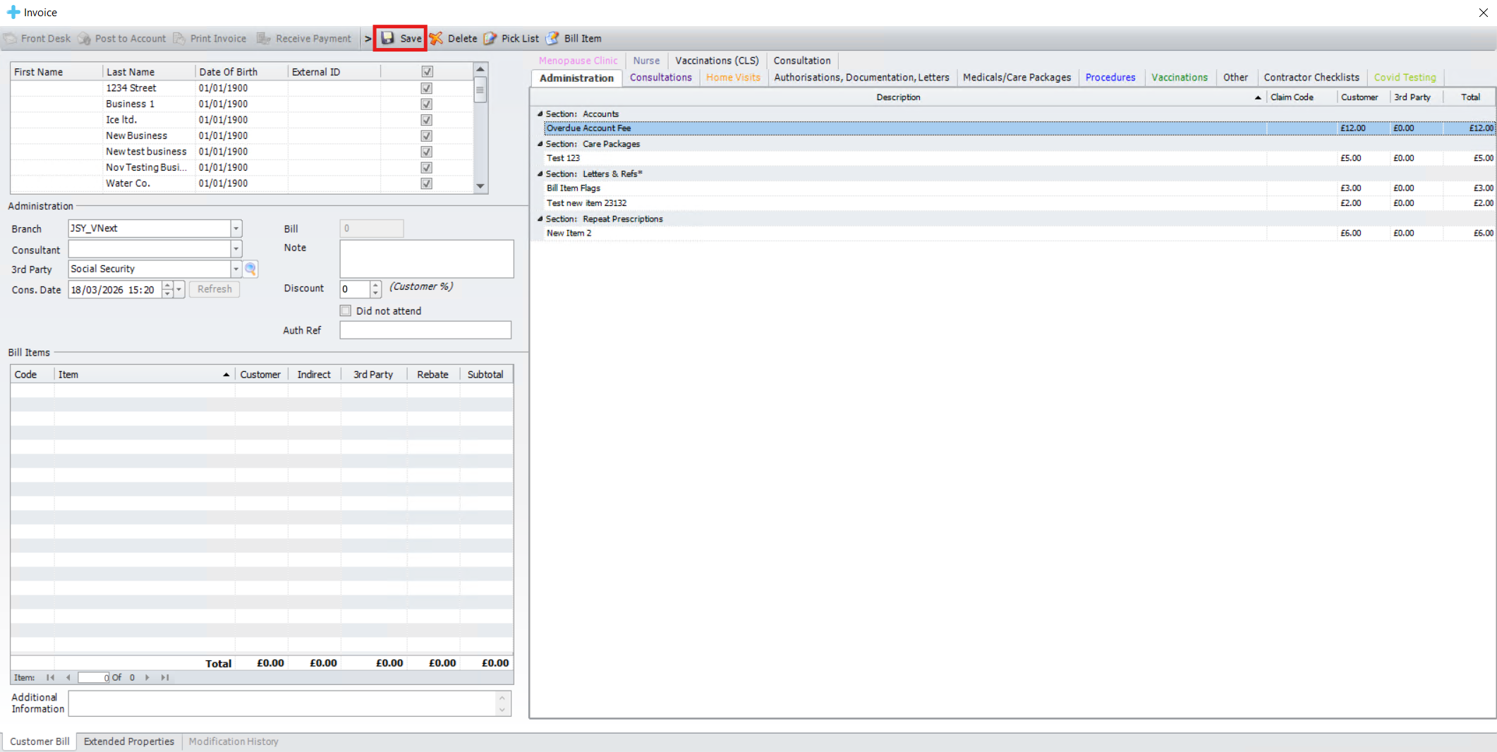 Once completed, click [Save] then [Save Bill]. then click [Next].