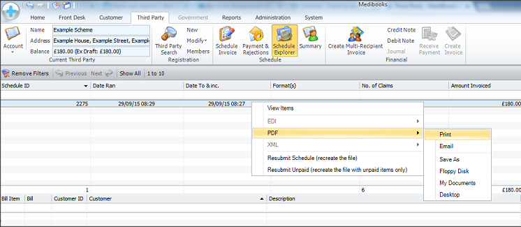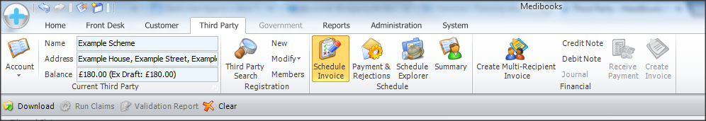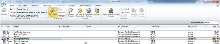 Open MediBooks and select the Third Party Tab. Click on [New]. Fill in the Third Party Details in the boxes provided. On the [Billing Information] Tab, select Schedule Invoices from the drop down, along with the chosen Price List. Once you are ...