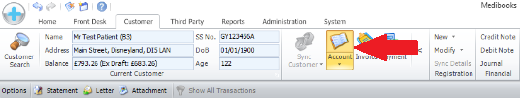 Go to the Customer Tab within MediBooks. Search for the Customer/Business required (Details of how to search are available in Searching) Select the Customer you wish to edit by clicking on the Customer. Under Modify click [Customer Details]. On the ...