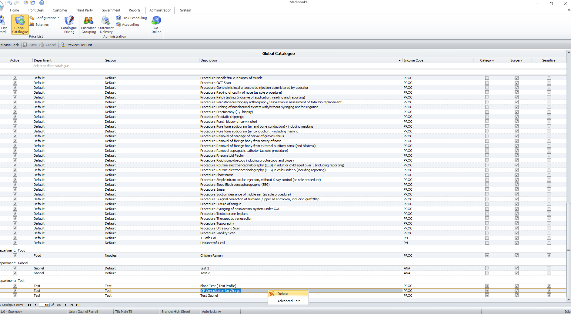 In this example, we are going to delete the Item "GP Consultation No Charge".