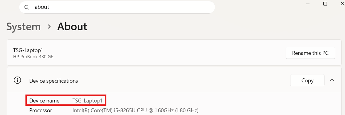To find out a PCs Machine Name, check the computer under Settings -> System -> About in the Device