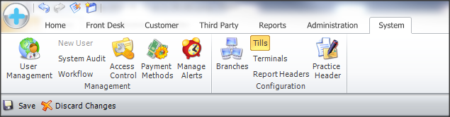 Open MediBooks and select the System Tab. Click the [Tills] button. From here you can Create a New Till by clicking in the indicated box and typing new information in its place. When you have finished making changes, click [Save] If you would like to ...