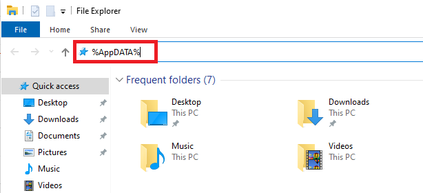 can be reached by typing %appdata% inside the Windows File Address bar.