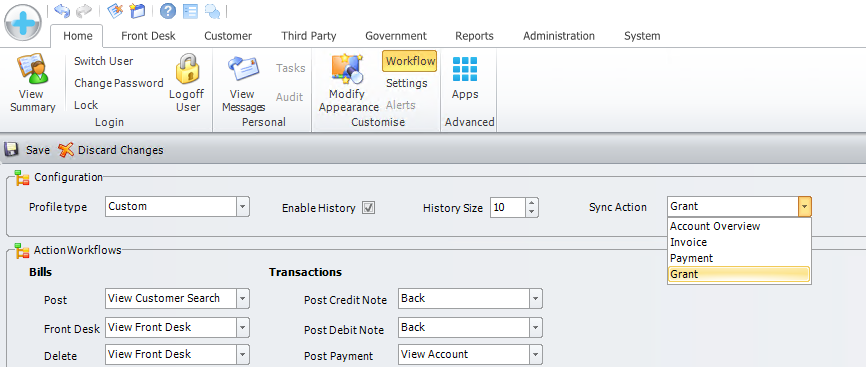 Grant slip behaviour when Medibooks is synced with Medicus can be configured on an individual level from Home -> Workflow, then select custom from the Profile type dropdown.