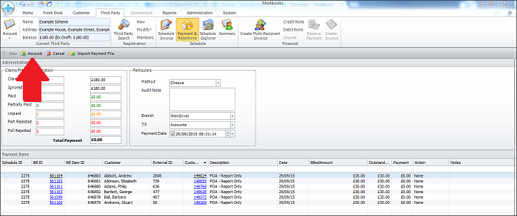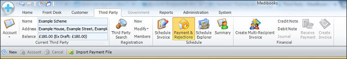 Open MediBooks and select the Third Party Tab. To begin using Third Party Schedules, you will need to ensure you have selected the [Schedule] Billing Type when creating the Third Party Provided this has been selected then you can create schedules as ...