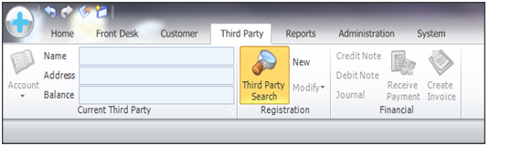 To receive a payment, go to the Third Party Search screen and select the company. Please note the Billing Type will need to be set as Schedule to allow you to click on the option.