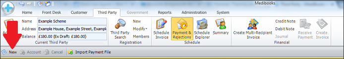 Open MediBooks and select the Third Party Tab. Click on [New]. Fill in the Third Party Details in the boxes provided. On the [Billing Information] Tab, select Schedule Invoices from the drop down, along with the chosen Price List. Once you are ...
