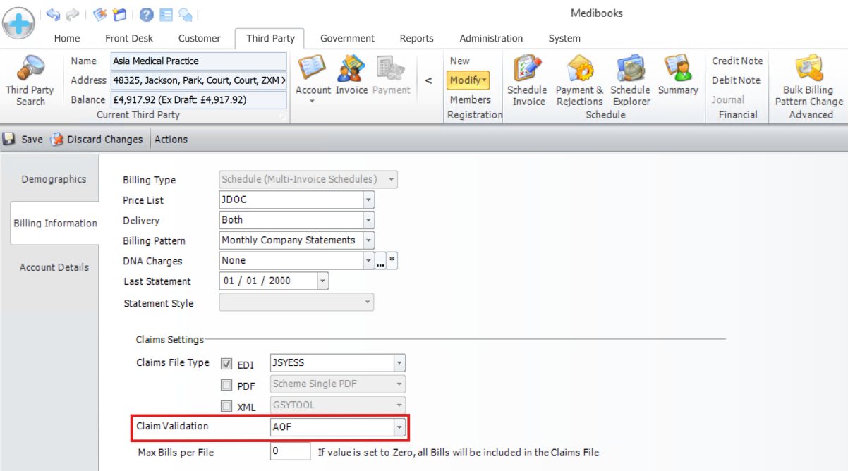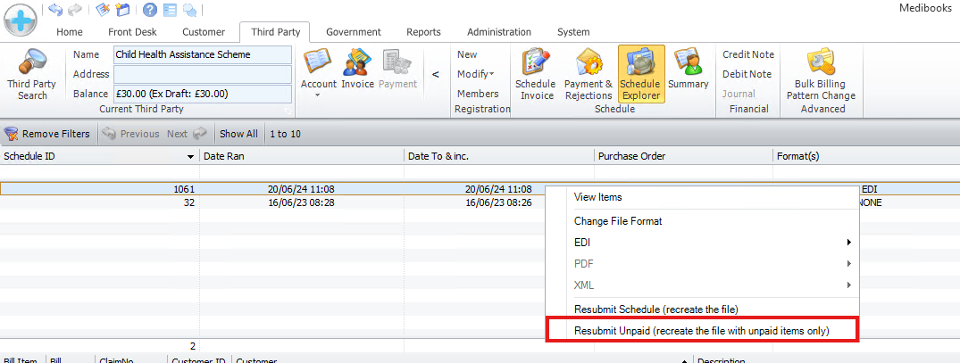 Open MediBooks and select the Third Party Tab. To begin using Third Party Schedules, you will need to ensure you have selected the [Schedule] Billing Type when creating the Third Party Provided this has been selected then you can create schedules as ...
