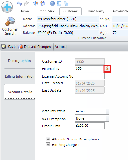 To remove the External ID, with the customer selected go to Modify -> Customer Details