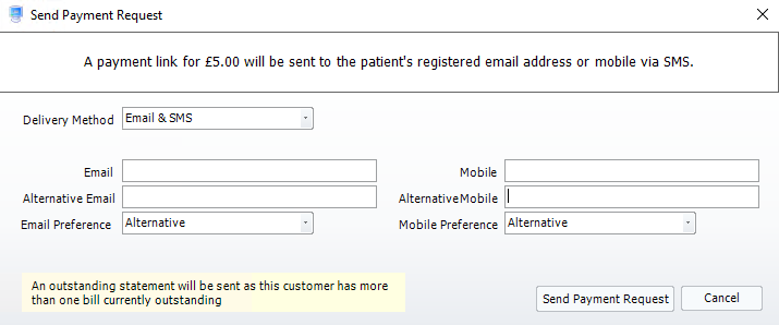 Whenever an outstanding statement is going to be sent a message will be shown on the payment request dialog.