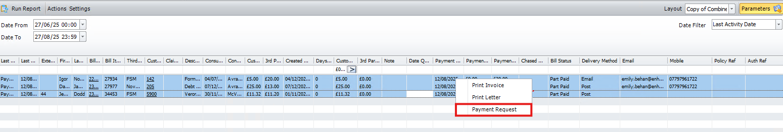 To help ensure speedy payment of unpaid invoices, payment requests can be used to electronically send invoices to customers at the end of each day. Depending on the workflow of the practice there are different methods that can be used. If at the end ...