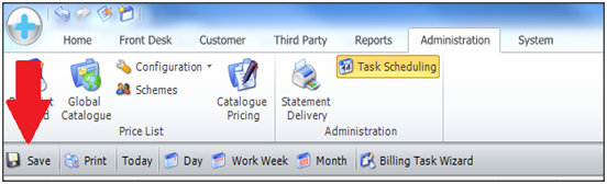 To find the Task Scheduling page, open MediBooks and select the Administration tab, then select [Task Scheduling].