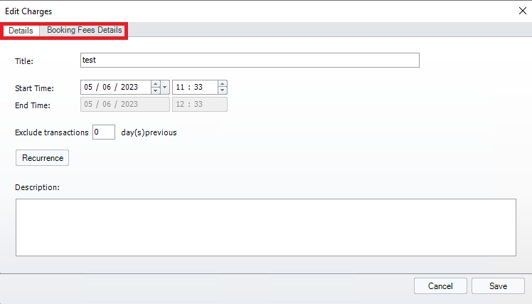 Another way to edit tasks is by right-clicking on a task and selecting [Edit Task]. From here you can edit the details associated with the task. Some of the categories (i.e. Charges) may have a second tab of details that can be accessed from the top of the dialog. The location of this is shown in the image below.