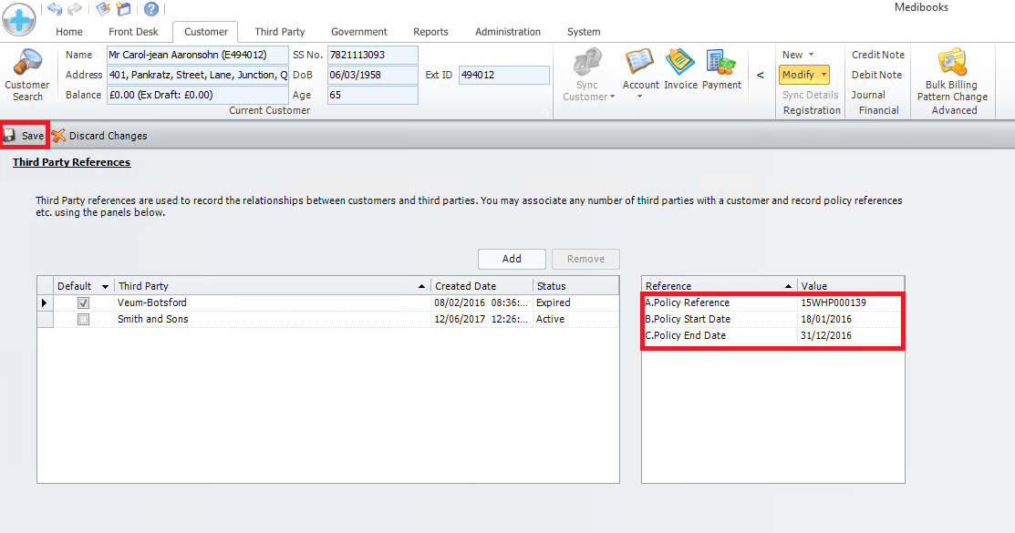 Using the reference details table reference numbers and start and end dates can be added to a third party, if an end date is used once this date is reached the policy will expire and certain behaviour may occur, which can be controlled using the settings explained in Changing What Happens When Policy End Date is Reached. Opening the Third Party References Page