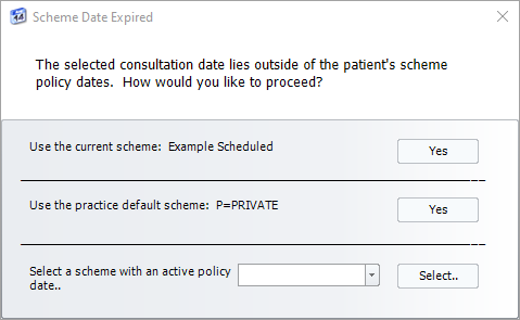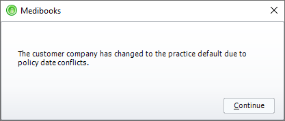 When "Choice" is selected and the invoice page is opened for a customer whose default third party has expired a message will appear asking which policy should be used. An example of this message is shown below.